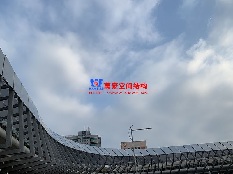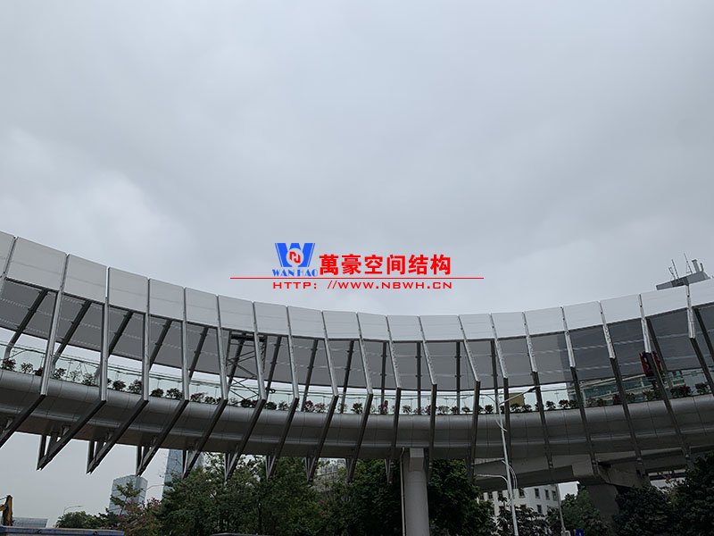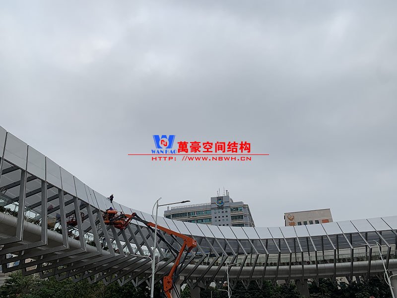 深圳龍崗三館一城項目市政配套工程1號連廊膜結(jié)構(gòu)工程項目為單層ETFE膜結(jié)構(gòu),共劃分為101個單元,總面積約為2000㎡,由寧波萬豪空間結(jié)構(gòu)工程有限公司承建。