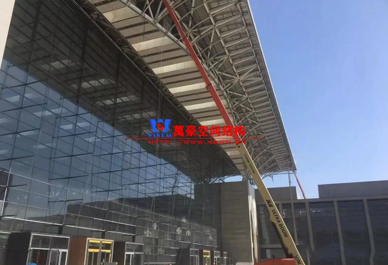 會展中心的入口大廳采用全透明幕墻,將南北向迥然不同的城市景觀聯(lián)系起來,輕質(zhì)半透明屋頂覆蓋入口大廳的公共區(qū)域,輕盈的白色薄膜材質(zhì)配以照明燈光,使整個大廳明亮而通透。該膜結(jié)構(gòu)幕墻項目由寧波萬豪空間結(jié)構(gòu)工程有限公司承建,項目完成的十分完美。
