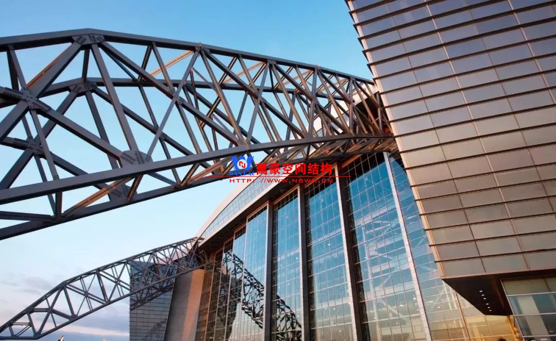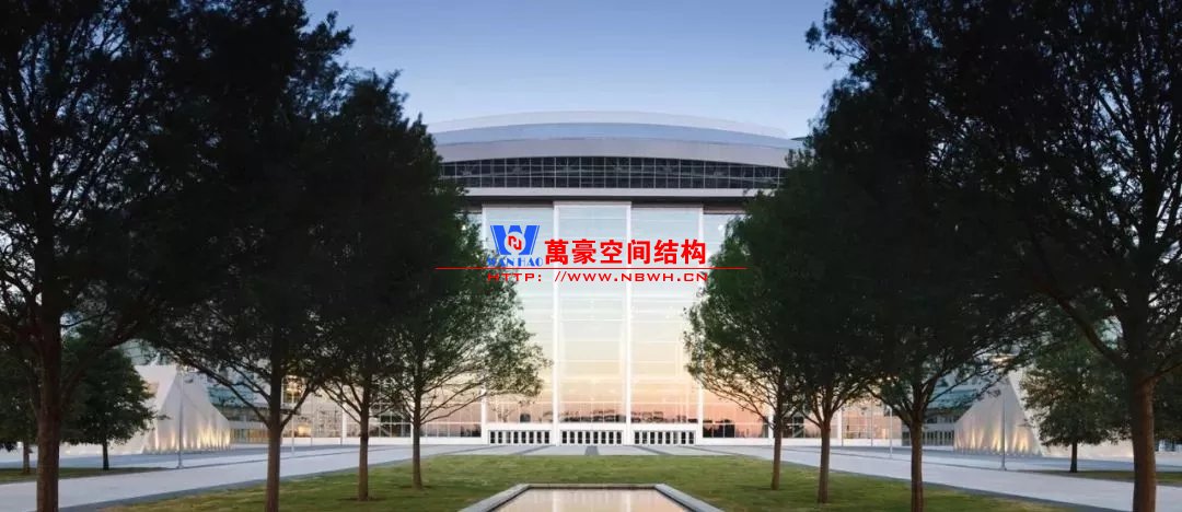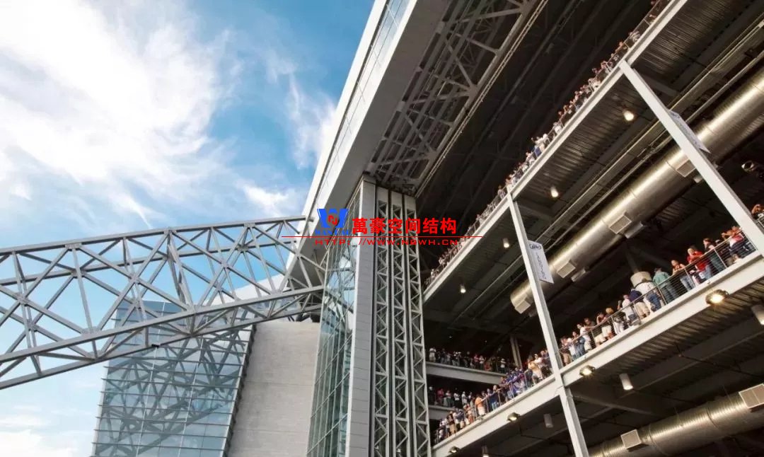 兩個(gè)鋼制拱形結(jié)構(gòu)分別覆蓋整個(gè)體育場(chǎng),長(zhǎng)達(dá)1,290英尺,支撐著體育場(chǎng)龐大的內(nèi)部空間,構(gòu)建了球場(chǎng)兩端入口的球迷廣場(chǎng)。