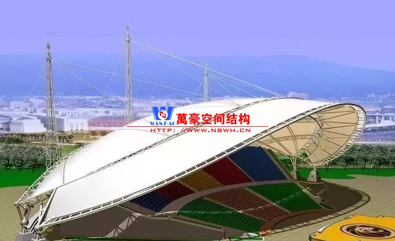膜結構又叫張拉膜結構(Tensioned Membrane structure),膜結構建筑是21世紀最具代表性與充滿前途的建筑形式。打破了純直線建筑風格的模式,以其獨有的優美曲面造型,簡潔、明快、剛與柔、力與美的完美組合,呈現給人以耳目一新的感覺,同時給建筑設計師提供了更大的想象和創造空間。