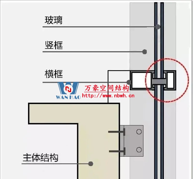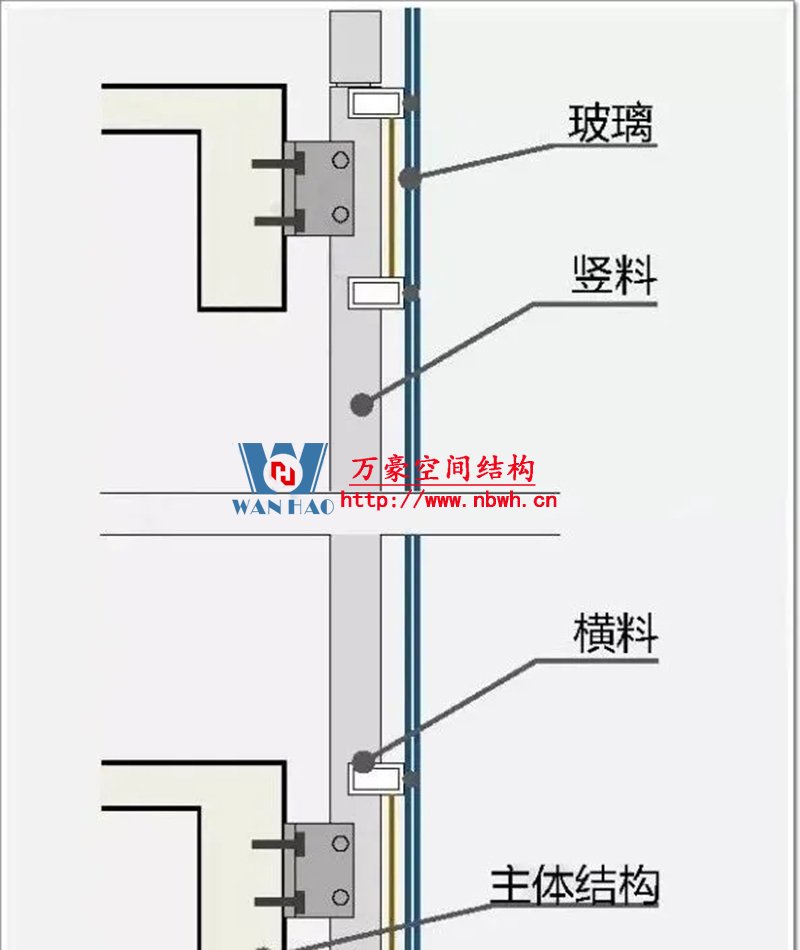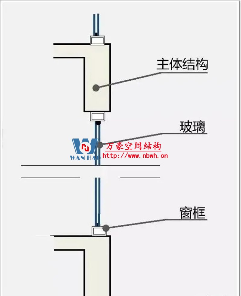 (1)與主體結構傳遞荷載的方式不同:幕墻通過錨固支座以點傳遞的方式,將自重和所受荷載與作用傳給主體結構;窗是通過四周的框架與洞口連接以線傳遞的方式將自重和所受荷載與作用傳給主體結構;
