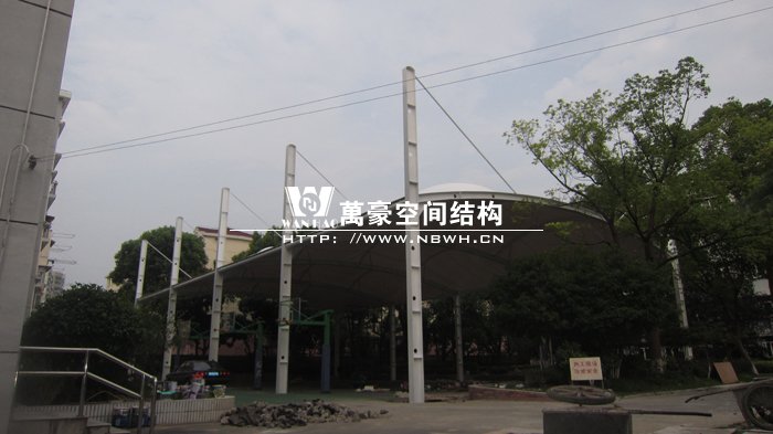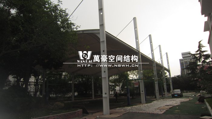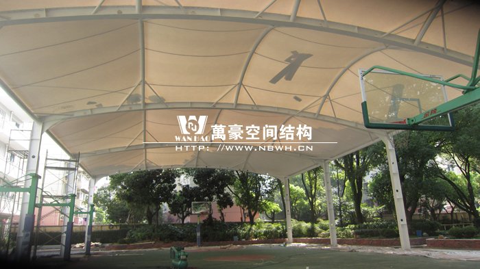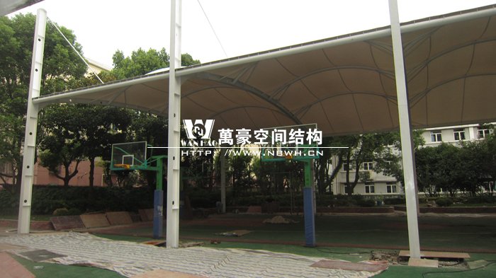 本項目位于上海閔行區第五中學內,球場采用膜結構蓋頂。