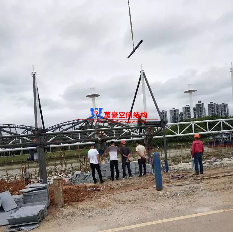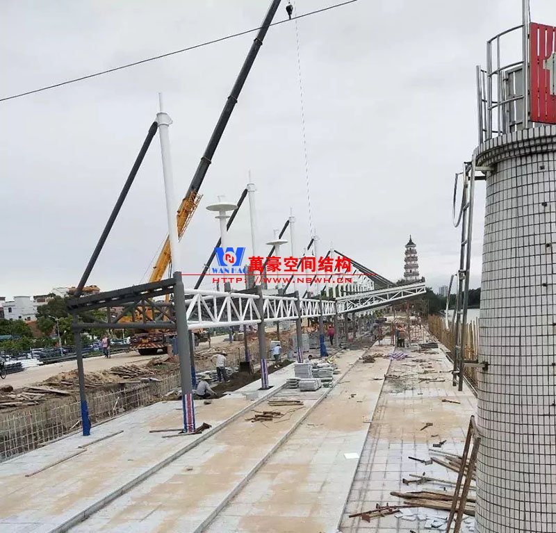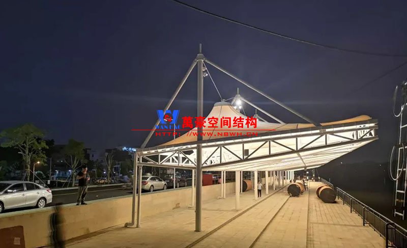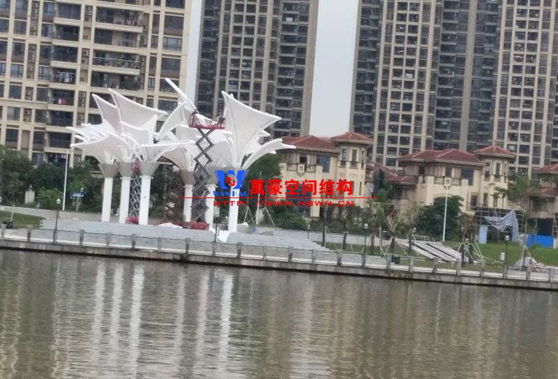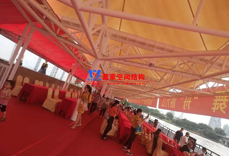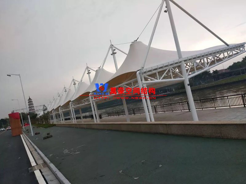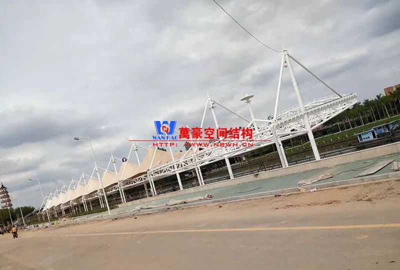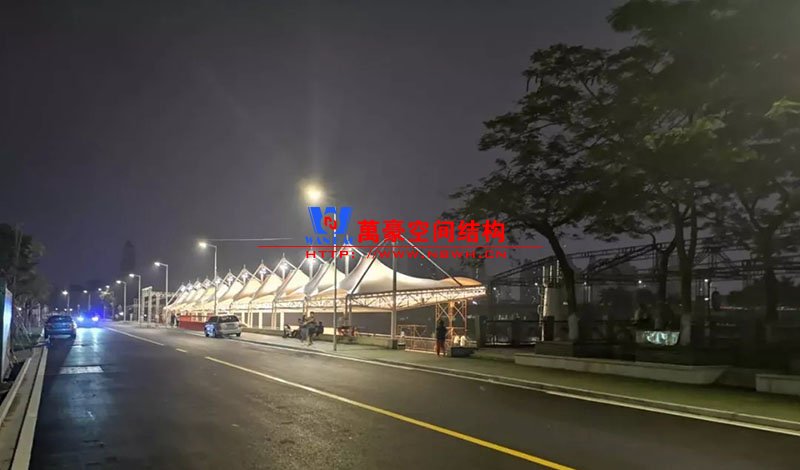 東莞東江西岸景觀膜結構工程位于廣東省東莞市,該項目是當地政府打造的重點工程,是為了宣揚中華傳統文化龍舟節專門打造的,由寧波萬豪空間結構工程有限公司中標承建。