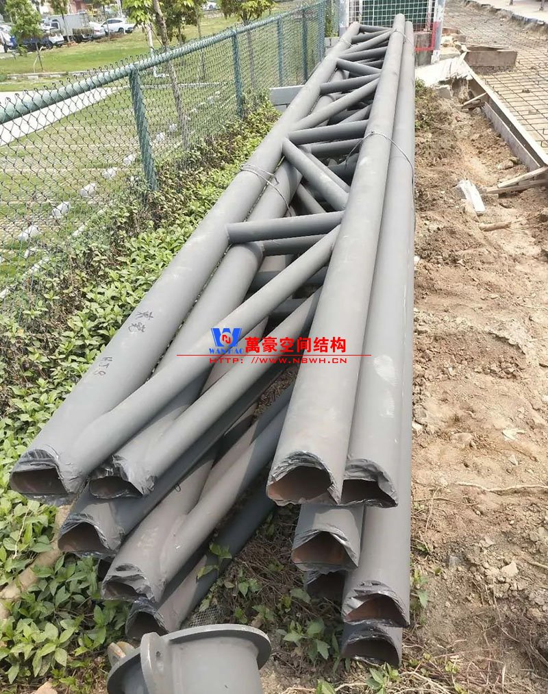 其中主席臺龍舟拉膜項目高度為7.25米,膜結構屋面材質為PTFE膜材。廣場鋼拉膜項目由六個龍船花造形景觀組成,每個龍船花景觀造形立柱的高度不得低于3.80米,花瓣造形最低高度 7.54米,花瓣造形最高高度9.608米,膜結構屋面材質為 PTFE網格基布雙面貼透明ETFE建筑膜。