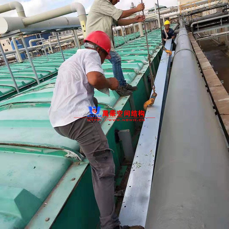 浙江東邦藥業(yè)有限公司污水池(好氧池)加蓋密閉膜結(jié)構(gòu)工程位于浙江省臺(tái)州市臨海市東邦藥業(yè)有限公司內(nèi),此工程用鋼量50噸,膜結(jié)構(gòu)展開(kāi)面積2500平米,由寧波萬(wàn)豪空間結(jié)構(gòu)工程有限公司承建。