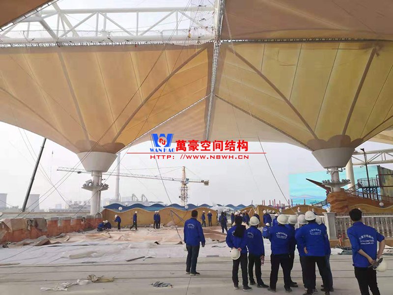 近日,萬豪空間結構組織員工進行了重大項目現場學習觀摩會。此次現場學習觀摩的項目,分別是青島紅島國際會展中心PTFE反吊膜結構工程以及聊城歡樂小鎮七彩云朵項目膜結構工程。