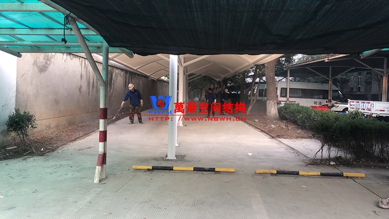 寧波市望春監獄非機動車膜結構車棚項目膜結構已完成并經初步驗收