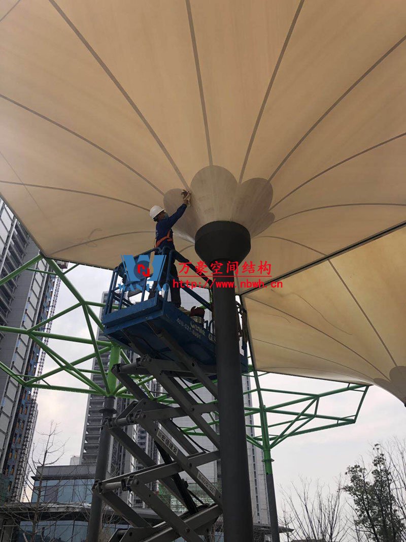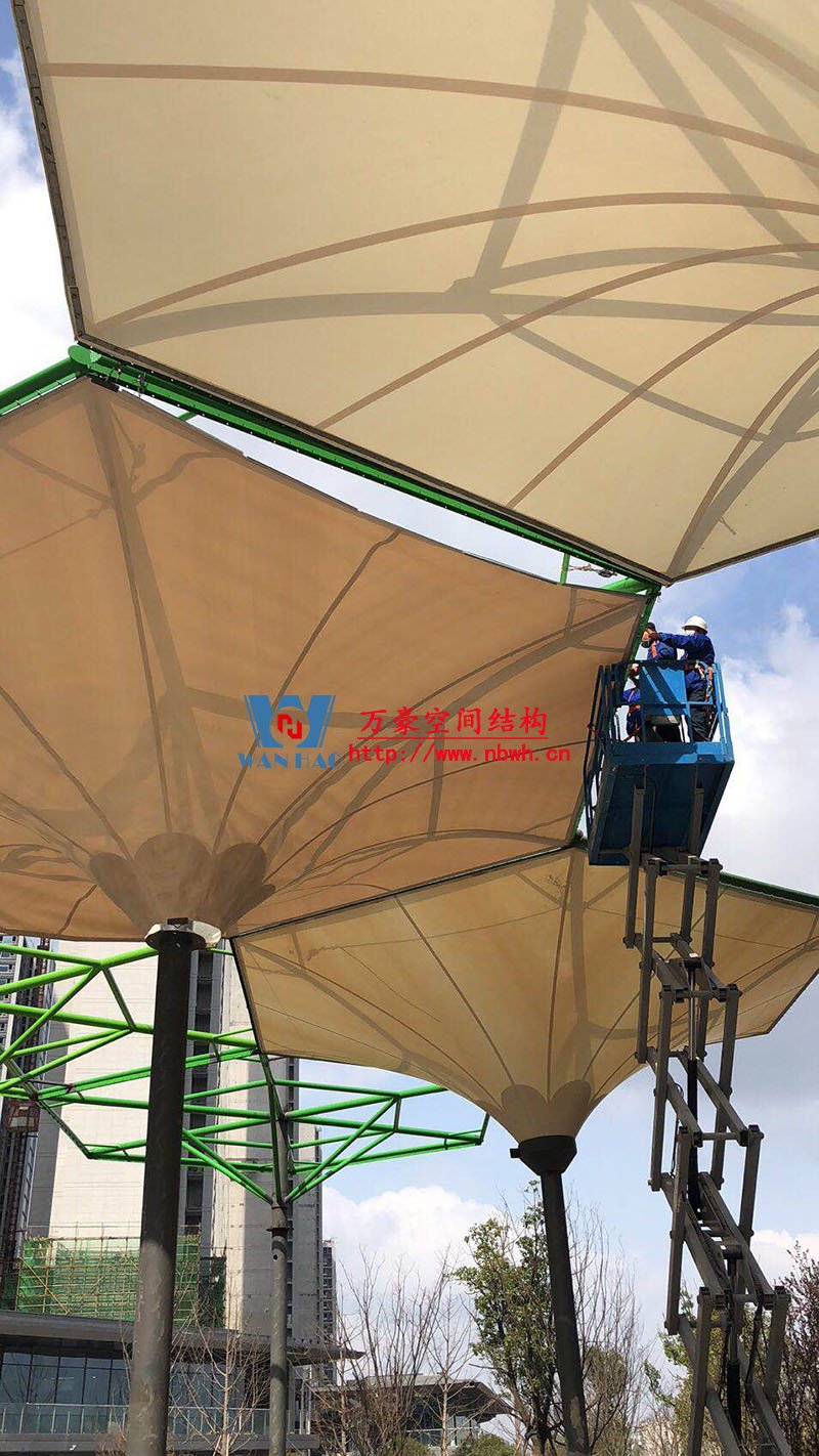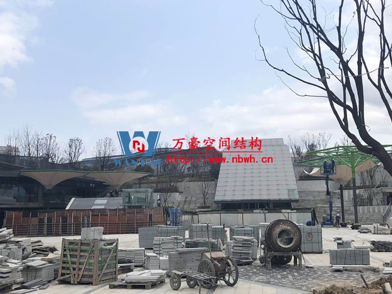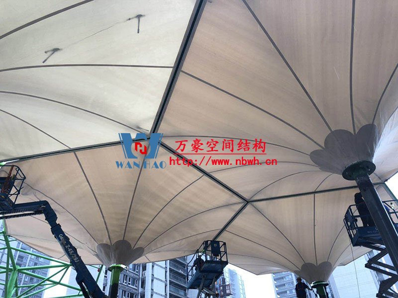 該項(xiàng)目膜材使用進(jìn)口PTFE膜材,膜結(jié)構(gòu)展開(kāi)面積5000平米,用鋼量100噸,由寧波萬(wàn)豪空間結(jié)構(gòu)工程有限公司承建。