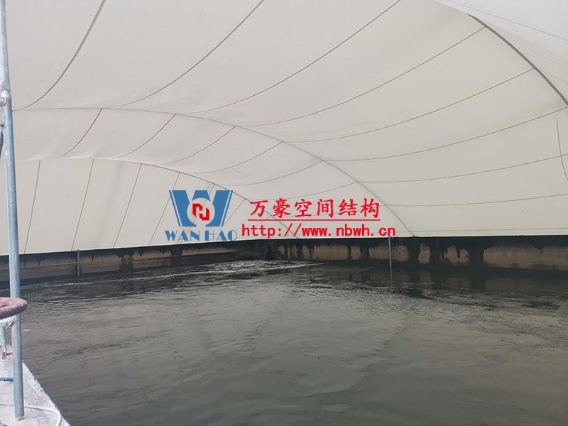 淮安鹽化新材料產業園區污水處理廠膜結構項目位于江蘇省淮安市,由寧波萬豪空間結構工程有限公司承建。該項目采用碳鋼骨架(外側)+聚酯纖維(反吊)結構形式,造型美觀,經濟適用。