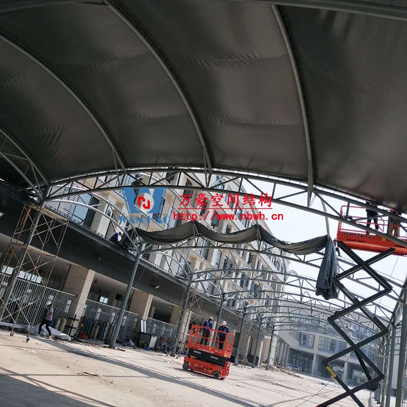 奉化方橋農(nóng)副鋼結(jié)構(gòu)雨棚工程位于浙江省寧波市奉化市內(nèi),此工程用鋼量100噸,膜結(jié)構(gòu)展開面積3500平米,由寧波萬(wàn)豪空間結(jié)構(gòu)工程有限公司承建。