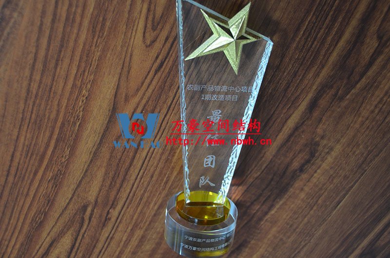由于萬豪在奉化方橋農副鋼膜結構雨棚工程施工中,項目組織機構完整,施工管理到位,安全文明生產,并完美的完成工程,所以得到業主的一致好評,并獲得最佳團隊獎的榮譽。