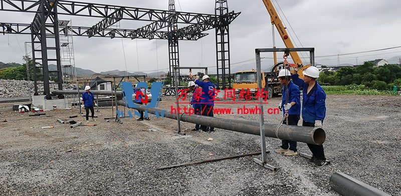 紹興西高速收費站頂棚工程用鋼量80噸,由寧波萬豪空間結(jié)構(gòu)工程有限公司加工和安裝。 目前,項目鋼結(jié)構(gòu)安裝完成。 期待整個工程的完工,來領(lǐng)略它別致的風(fēng)采。