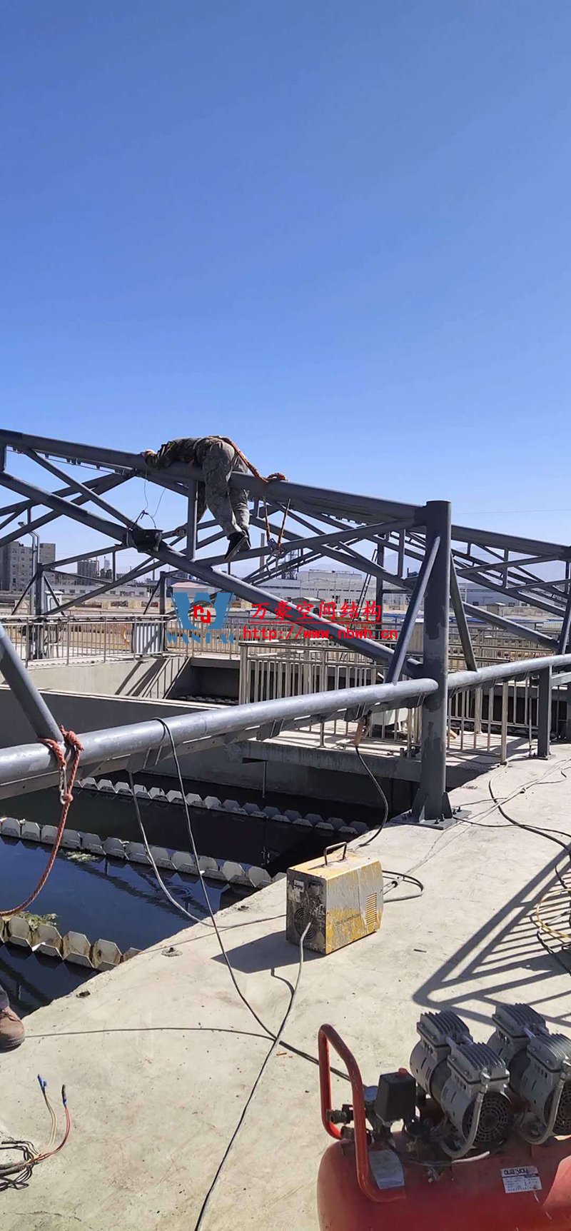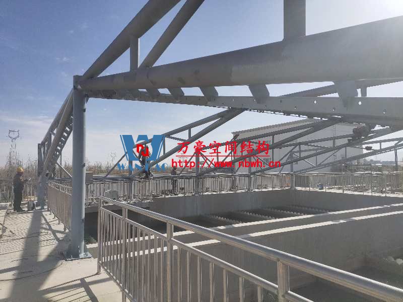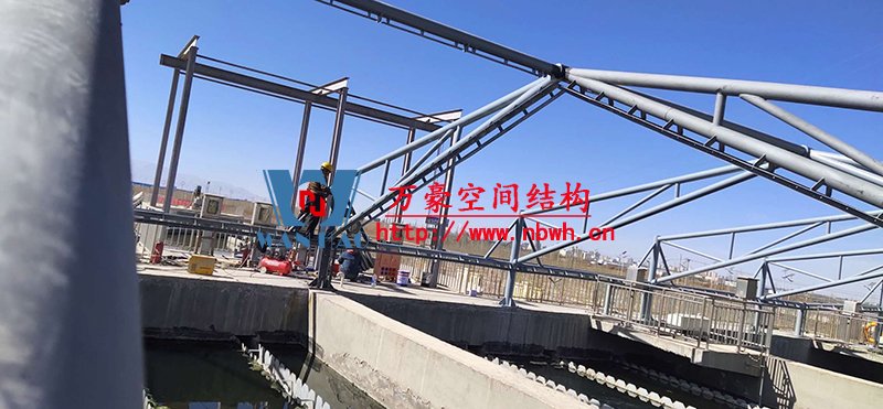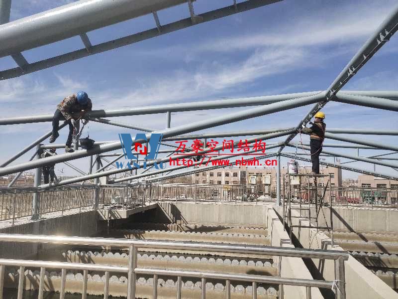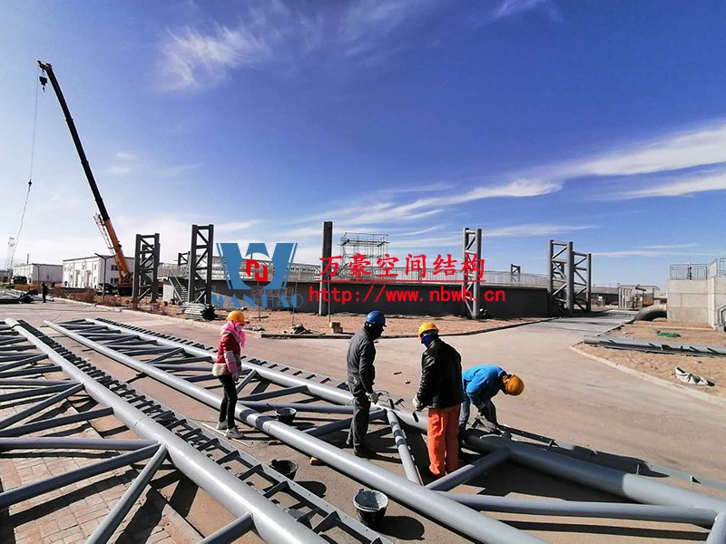 格爾木工業園昆侖工業區工業污水廠污水池保溫膜結構工程位于海西蒙古族藏族自治州格爾木市,此項目是國內首個ETFE膜結構污水池加蓋工程。 該工程主要建設格爾木工業園昆侖工業區工業污水處理廠首期2.5萬立方米/天工程二沉池、水解酸化池和預沉池池體保溫膜結構安裝。項目用鋼量230噸,膜結構展開面積5000平米。 目前,預沉池和酸化水解池鋼結構已完成,油漆已完成。二沉池基柱加焊,鋼架焊接中。 期待整個工程的完工,來領略它別致的風采。