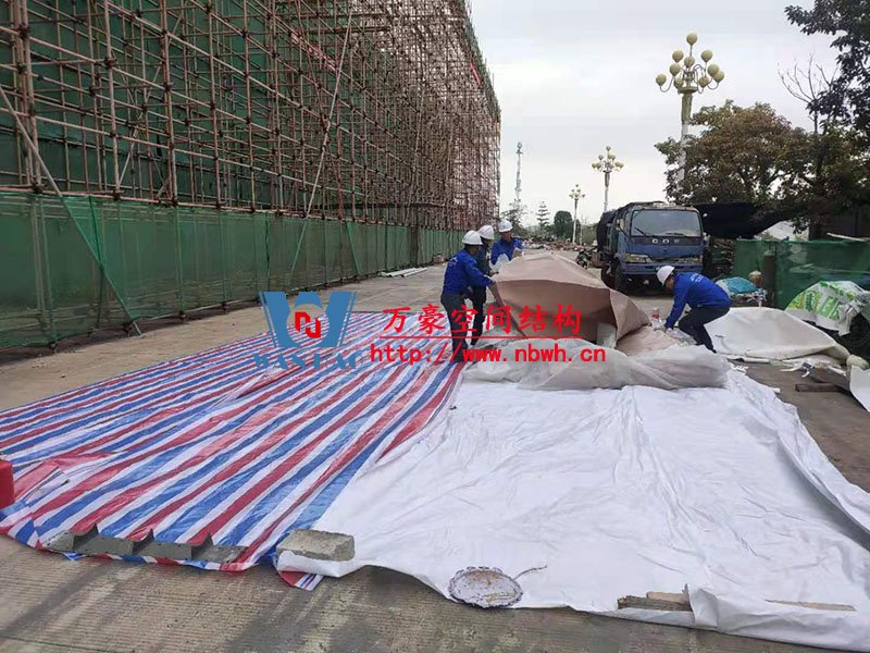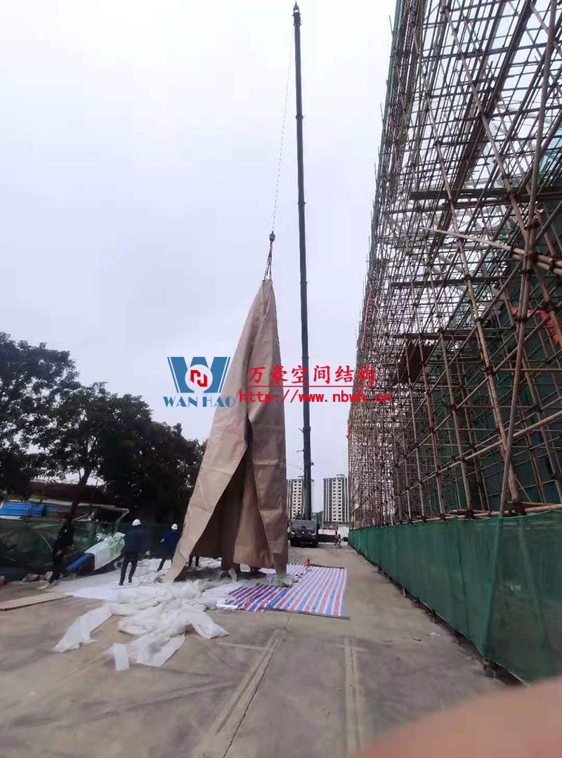 汕尾市體育中心(一期)工程田徑場膜結構項目位于廣東省汕尾市,PTFE膜結構展開面積5000平米,由寧波萬豪空間結構工程有限公司承建。 目前,該項目的鋼結構工程部分已完成,進入膜結構安裝階段。 期待整個工程的完工,來領略它別致的風采。