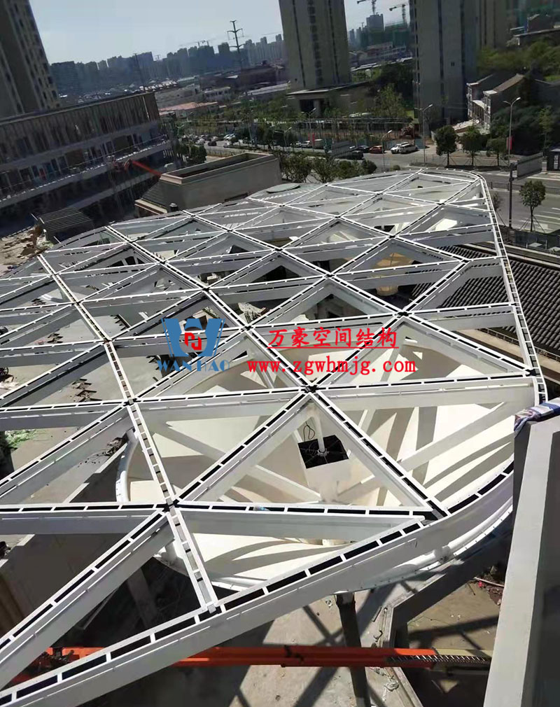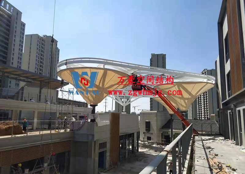 臺州大板橋ETFE氣枕天幕項目位于浙江省臺州市椒江區,由ETFE氣枕天幕及PTFE膜結構組成。