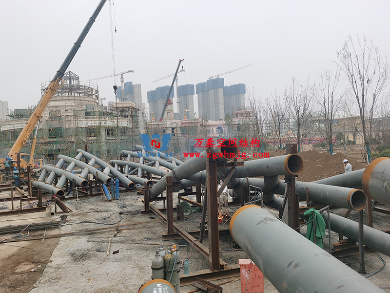 螺旋空間異形飄帶由內外雙曲線弦桿為造型輪廓,弦桿間布設連接鋼結構,輔以白色飄帶ETFE膜結構,造型升騰盤旋、扶搖直上。